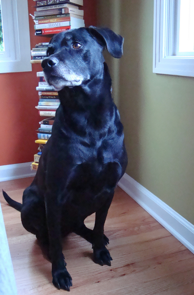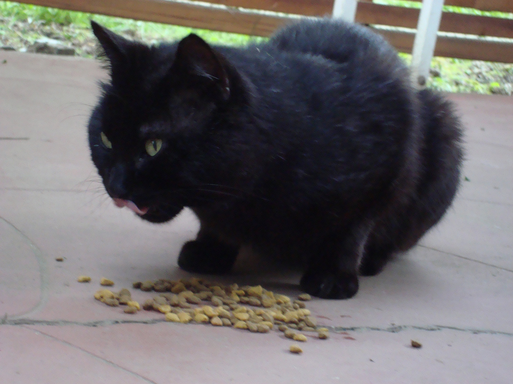 One Sunday evening I am staring at nothing out the front windows in the kitchen and see a small black cat, sauntering—yes, he is sauntering—up the left set of stairs. He’s a tiny little thing with bright green eyes. “Oh look, a black cat,” I yell to my partner, Julie. “What?” she says, running into the kitchen, leaning toward the window. He walks right up the steps onto the back patio. Julie is absolutely and utterly excited about the prospect of another cat. She grabs the cat food and rushes outside, sprinkling it on the ground. Not too rushed, though. “I don’t want to scare him off,” she says. I stand inside for a moment and eventually move to the doorway with the door nearly shut behind me so Isabel, the cat that lives with us, doesn’t run out. “Oh, he’s so skinny—he must not have a home. His head looks so big because he’s too skinny.” She is knelt down next to him, but not too close, barely touching him. I can see his tiny ribs, black fur flecked with gray. He is older than I would have thought, his skin sagging a little. The shining smile in Julie’s eyes when she looks up at me has me feeling momentarily outrageous, so much so that I want to shout out, “Let’s keep him!”